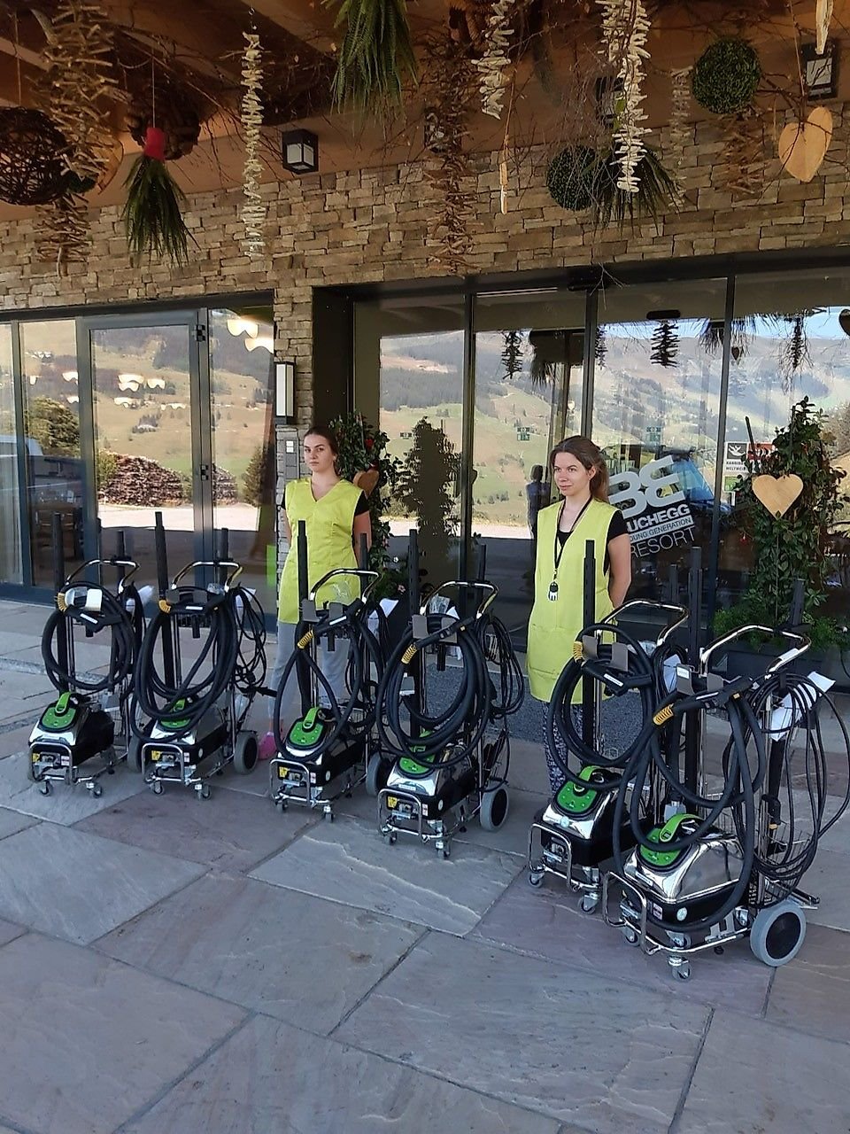 Cleaning with micro dry steam makes the use of chemical products completely unnecessary. A 100% saving in cleaning agents therefore means 0% impact on the environment and on the health of cleaning staff, guests, customers, etc.
